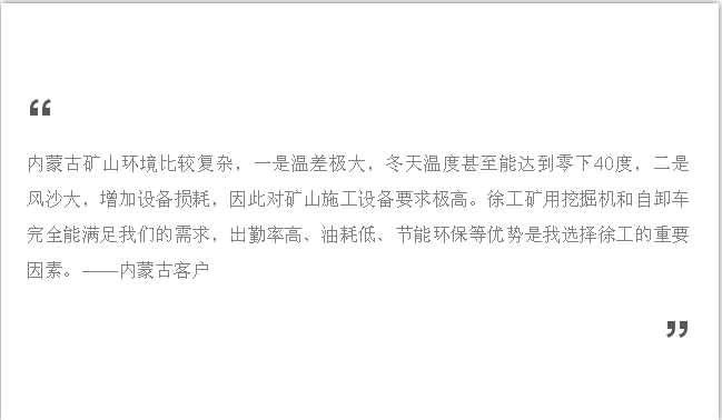 内蒙古拥有丰富的铁矿资源,对大型露天成套矿业装备的需求高,并且急需大型矿业装备推动当地矿山产业技术升级。徐工大型露天成套矿业装备,经过客户实地走访调研以及当地矿山市场环境严峻考核之后,凭借卓越性能成为了内蒙古客户心中平衡当地绿色环保和经济发展、值得信赖的首选品牌。