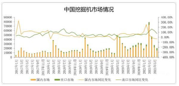 受就地过节政策影响,2021年传统春季销售旺季前移,2、3月市场销量大幅度超预期,尤其是3月国内市场的超高销量严重预支了四五月的市场。因此国内挖掘机市场在四五月出现了不同程度的下滑。